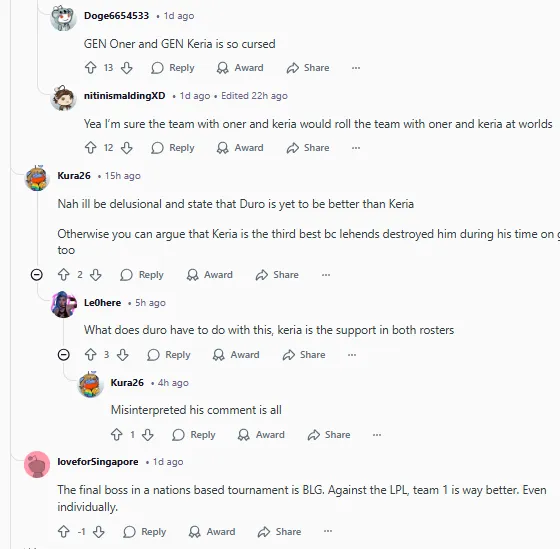 是啊,我确信那支带了Oner和Keria的队,绝对能把另一支也带了Oner和Keria的队在世界赛上吊起来打。