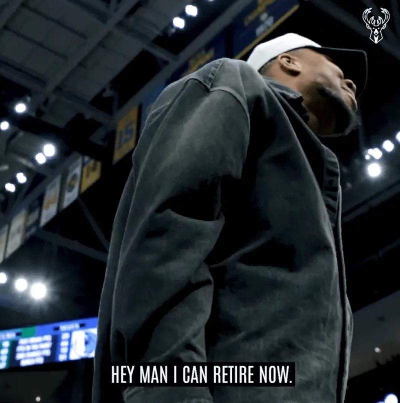 亚历克斯罚球拿到生涯首分后,字母哥场边调侃:嘿,伙计,我可以退役了,我已经功成名就了。